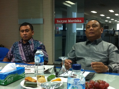 Gubernur Gorontalo, Rusli Habibie (kanan), melakukan kunjungan silaturahmi ke redaksi Rakyat Merdeka di Gedung Graha Pena lantai 9, Kebayoran Lama, Jakarta Selatan, Selasa siang (27/8). DEDE ZAKI MUBAROK/RMOL
