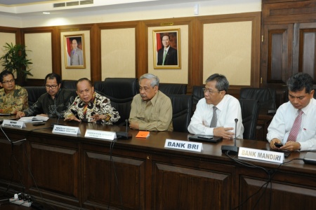 Mandiri Sunarso dalam Konfrensi Pers seusai melakukan rapat di kantor