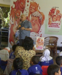 “Padahal kebiasaan bercerita kepada anak itu tepat dilakukan untuk menanamkan nilai-nilai moral berupa kejujuran, keberanian, tanggung jawab, ketulusan, tolong menolong dan sebagainya. Cerita itu lebih mudah ‘nyangkut’ dalam alam pikiran anak.â€