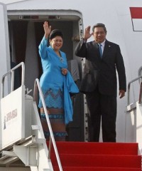Di kaki tangga pesawat khusus kepresidenan Boeing 737-800 milik Garuda Indonesia, Presiden disambut oleh Gubernur Kalimantan Selatan Rudy Ariffin dan Pangdam VI/Mulawarman Dicky Winal Usman. Dari bandara, Presiden SBY dan Ibu Ani langsung menuju tempat meginap di Banjarbaru, tenggara ibukota Banjarmasin.