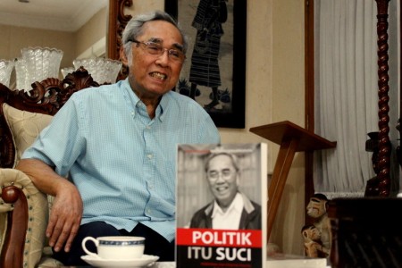 Politisi senior PDI Perjuangan, Sabam Sirait, membuka sedikit dari isi buku Politik Itu Suci. Buku yang akan diluncurkan pada hari Minggu depan ini (10/11) menuliskan gagasan dan praktek politik Sabam, yang juga merupakan pendiri PDI, sebelum akhirnya berubah menjadi PDI Perjuangan. YAYAN SOPYANI AL HADI/RMOL