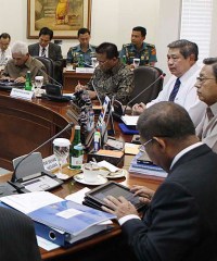 Hadir dalam rapat tersebut antara lain, Menko Polhukam Djoko Suyanto, Menko Kesra Agung Laksono, Mensesneg Sudi Silalahi, Menlu Marty Natalegawa, Menhan Purnomo Yusgiantoro, Mensos Salim Segaf Al-Jufri, Menkeu Chatib Basri, Panglima TNI Moeldoko, dan Kepala BNPB Syamsul Maarif.