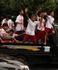 Kemarin, puluhan siswa SMA, SMK, SMIP Kharismawita berunjuk rasa menuntut 13 temannya yang dikeluarkan pihak sekolah bersekolah kembali. Unjuk rasa digelar di halaman sekolah Kharismawita di Jalan Raya Parung-Ciputat, Bojongsari, Depok.
