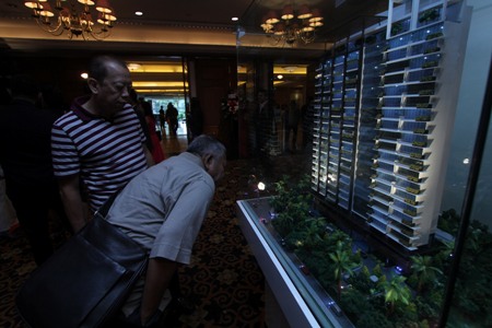 Pengunjung melihat miniatur Capitol Suites saat soft launching apartemen terbarunya, Capitol Suites dengan konsep simply luxurious dan merupakan apartemen premium di kawasan hunian elit Menteng, Jakarta, Kemarin. DWI PAMBUDI/RM