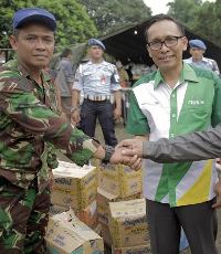Pemberian sembako dan obat-obatan serta pendirian posko pengungsi banjir didedikasikan bagi warga di sekitar Bandara Halim Perdanaksusuma yang terkena banjir yang melanda ibu kota sejak Minggu lalu (12/1).