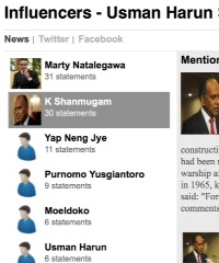 Sementara itu, di media Singapore tercatat ada 36 berita dari 11 media. Bila influencer terbesar di media Indonesia diduduki oleh Moeldoko, lain halnya dengan di Singapura yang menempatkan Menlu RI Marty Natalegawa sebagai narasumber utama yang paling banyak dirujuk, diikuti oleh Menlu Singapura K. Shanmugam dan Jubir Wakil Perdana Menteri Singapura, Teo Chee Hean, Yap Neng Jye.