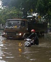 2. Jalaan Kelapa Gading di Jakarta Utara, depan Mall of Indonesia, genangan air menacapai 20-40 cm