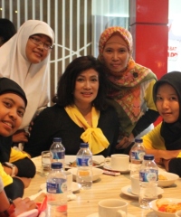 Tatty, yang mengenakan baju hitam bersyal kuning, datang ke Jogyakarta mendampingi suaminya, Aburizal Bakrie, Ketua Umum Partai Golkar yang akan mengadakan kampanye pada Sabtu (29/3). Juga turut dalam rombongan anaknya Anindra Ardiansyah Bakrie serta menantunya Taufan Nugroho.