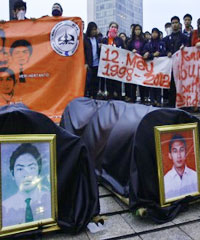 Syahrir, ayah dari Heri Hartanto, mengaku tidak puas atas janji-janji yang selalu diberikan pemerintah. “Selama 16 tahun kami tidak pernah lupa menuntut pemerintah memberi penyelesaian atas kasus ini dengan seadil-adilnya, semoga tuntutan ini dilaksanakan pemerintah meski pemerintah mau diganti,†sebutnya.
