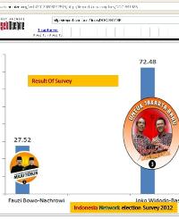 Menurut artikel tersebut, survei dilakukan sejak 28 Agustus - 9 September 2012, melibatkan 10 ribu warga Jakarta dari berbagai latar belakang dengan kemungkinan error survei sekitar 2.5 persen. Akun 'Beritabisnis' memposting tulisan tentang survei ini dengan judul 'Joko Widodo would gather 72.48 percent of the total vote in the runoff. Artikel dapat diakses di