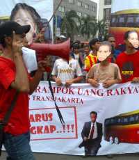 "Jokowi yang menetapkan pemenang tender dan menandatangani kontrak proyek bus Transjakarta," kecam koordinator aksi, Vincent di tempat yang sama.