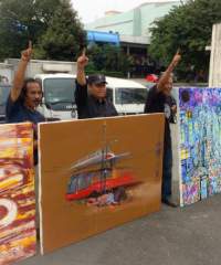 Lima pelukis ini mengapresiasikan bentuk protesnya di atas kanvas yang dituangkan dalam lukisan bis transjakarta yang berkarat, tiang-tiang monorel yang belum jado, kemacetan serta lukisan lain yang menggambarkan situasi Jakarta terkini.