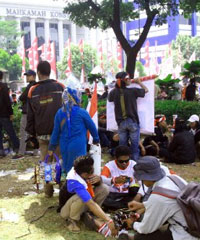 Kepala Dinas Pertamanan dan Pemakaman DKI Jakarta Nandar Sunandar menyayangkan aksi para pendemo pendukung Prabowo-Hatta yang tidak memperhatikan lingkungan sehingga taman dan jalur hijau rusak. “Benar, sedih sekali saya waktu melihatnya tadi,†kata Nandar, kemarin.
