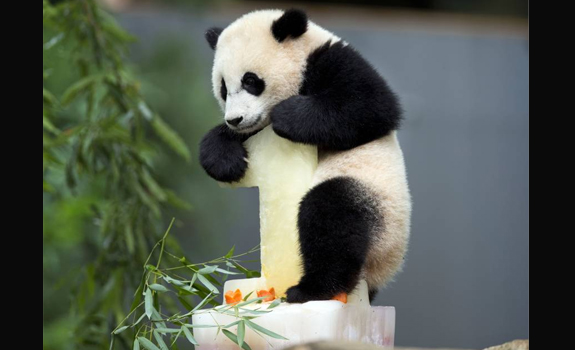 Seekor anak panda betina bernama Bao Bao memanjat kue ulang tahun pertamanya yang terbuat dari wortel dan ubi jalar di Kebun Binatang Nasional Washington akhir pekan lalu. Bao Bao yang lahir di kebun binatang itu mendapatkan sejumlah hadiah di hari ulang tahunnya seperti gambar persik dan bambu yang melambangkan umur panjang dan kesehatan yang baik sebagai bagian dari tradisi Tiongkok. Ia merupakan jenis panda liar raksasa yang biasa hidup di hutan bambu Tiongkok tengah. ASSOCIATED PRESS