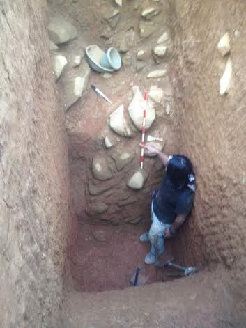 Erick menjelaskan artefak-artefak ini ditemukan tim sore tadi. Selain berbagai artefak, dari proses ekskavasi yang dilakukan juga ditemukan struktur dinding bangunan di bawah permukaan teras-5. Struktur dinding "menerus" pada lubang galian ekskavasi hingga mencapai kedalaman 3,30 miter.