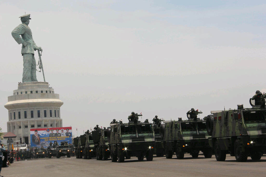 Berbagai macam peralatan tempur alat utama sistem persenjataan TNI baik produksi PT Pindad maupun produksi luar negeri tampak digelar dalam perayaan HUT ke-69 TNI yang berlangsung sangat spektakuler di Surabaya, (Selasa, 7/10). DAR EDI YOGA/RMOL