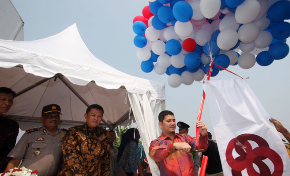 Direktur Utama PT Poris Benteng Betawi Deddy Indrasetiawan (kanan) dan Perwakilan Walikota Tangerang Deni Koswara meresmikan dimulainya pembangunan Apartemen Poris 88 di Jalan Benteng Betawi, Poris, Kota Tangerang. Poris 88 tahap pertama akan membangun 2 gedung Apartemen 16 lantai dengan ukuran unit studio 21 M2 seharga 200 jutaan dan 2-bedroom 42 M2 seharga 400 jutaan. Poris 88 ini terletak di lokasi yang strategis dekat dengan Jakarta dan Bandara Soekarno Hatta serta letak yang sangat dekat dengan Statiun Poris, Terminal Bus Poris. RANDY TRI KURNIAWAN/RM