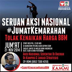Seperti diwartakan sebelumnya, Ketua Umum Pengurus Pusat KAMMI Andriyana menyatakan dengan tegas bahwa KAMMI menolak keputusan pemerintah menaikkan harga BBM.