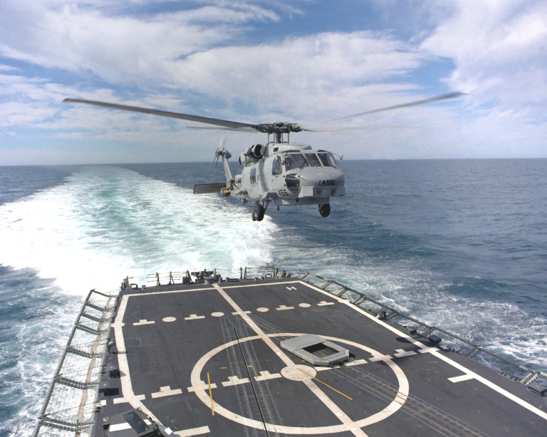 Heli jenis Seahawk ini menurunkan 4 kantong jenazah yang diduga korban pesawat AirAsia QZ8501.