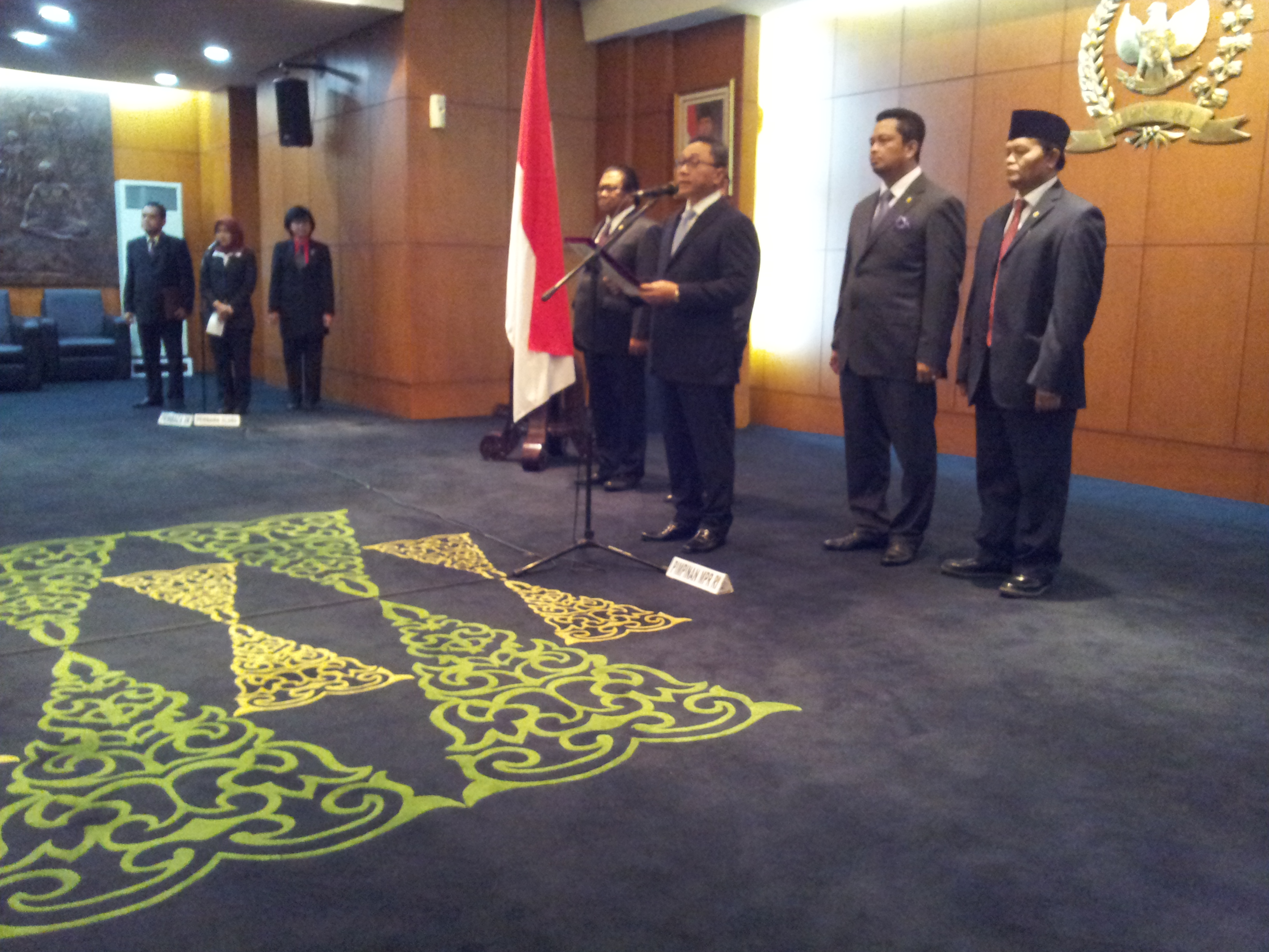 Pengambilan sumpah jabatan anggota MPR ini dilakukan di hadapan seluruh pimpinan MPR. Ketua MPR Zulkifli Hasan sebagai pembaca sumpah.