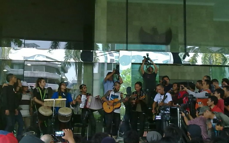 "Ini adalah suatu lembaga yang penting untuk masyarakat, tapi sosialisanya kurang ke kalangan bawah," terang Mike di kantor KPK, Jakarta, Jumat (20/2). Marjinal di KPK launching album terbaru mereka.