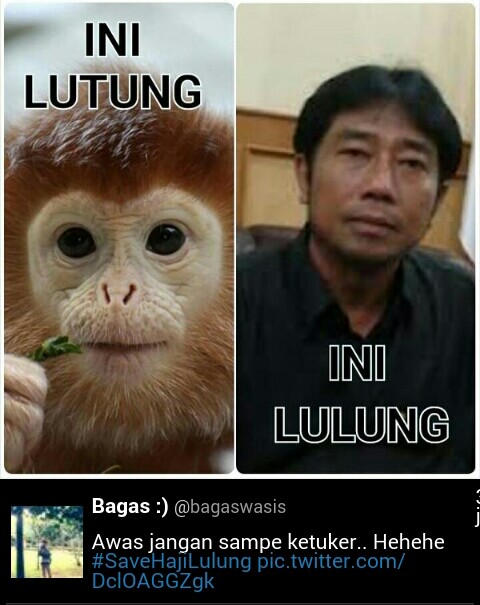 Lain itu, ada meme yang menggambarkan H. Lulung dengan seekor kera. "Yang kanan lutung, yang kiri Lulung. Awas, jangan ketuker".