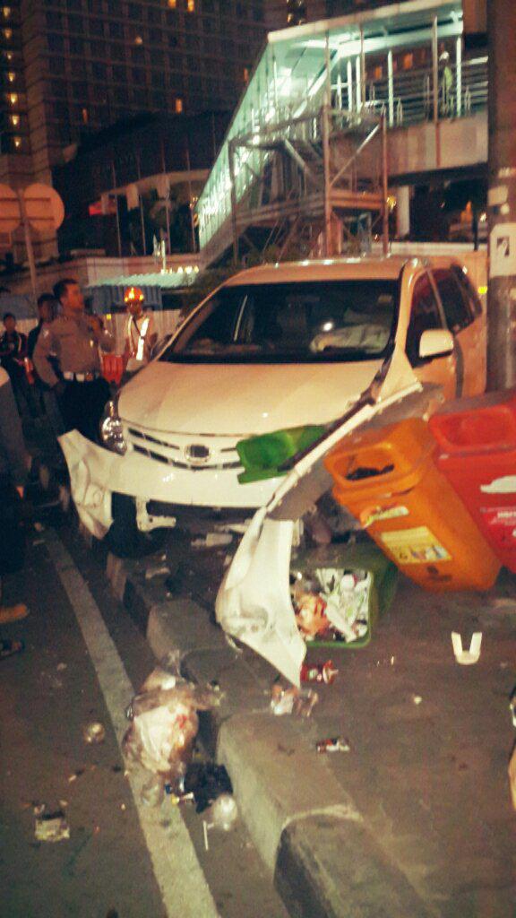 Sebuah mobil Avanza berwarna putih dengan nomor polisi B 1741 menabrak traffic light di Bunderan HI pada pukul 02.21 WIB. Demikian sebagaimana kicauan akun Twitter