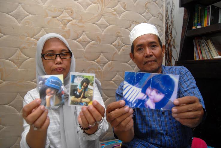 Kedua orang tua warga negara Indonesia (WNI) terpidana mati kasus narkoba di Malaysia, Ajeng Yulia, menunjukan foto anak mereka usai wawancara di kediamannya Jalan Rasamala III, RT 03/RW 13 No 22 Menteng Dalam Jakarta. Senin (9/3). Putu Wahyu Rama/RMOL