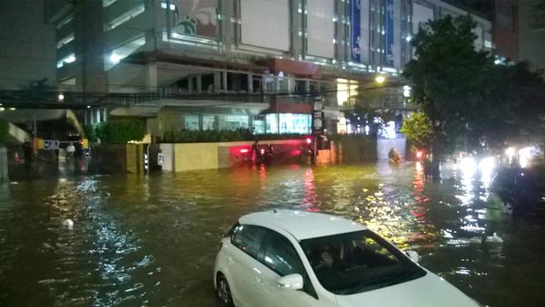@TMCPoldaMetro.Banjir setinggi 20 hingga 30 cm menggenang di depan Kemchick jalan Kemang Raya. Banjir dengan ketinggian serupa juga terjadi tepat di depan Balai Kartini Jalan Gatot Subroto dan depan Goedkoop Jalan Bendungan Hilir Raya.