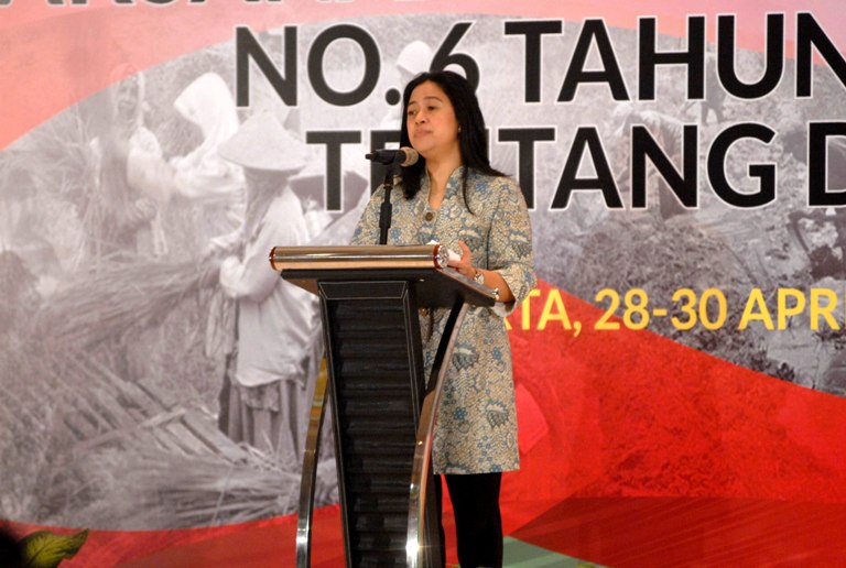 Demikian disampaikan Menteri Koordinator Bidang Pembangunan Manusia dan Kebudayaan, Puan Maharani, dalam acara Sosialisasi Pelaksanaan UU Desa yang dihadiri ratusan kepala daerah dan desa seluruh Indonesia di Jakarta (Selasa, 28/4).