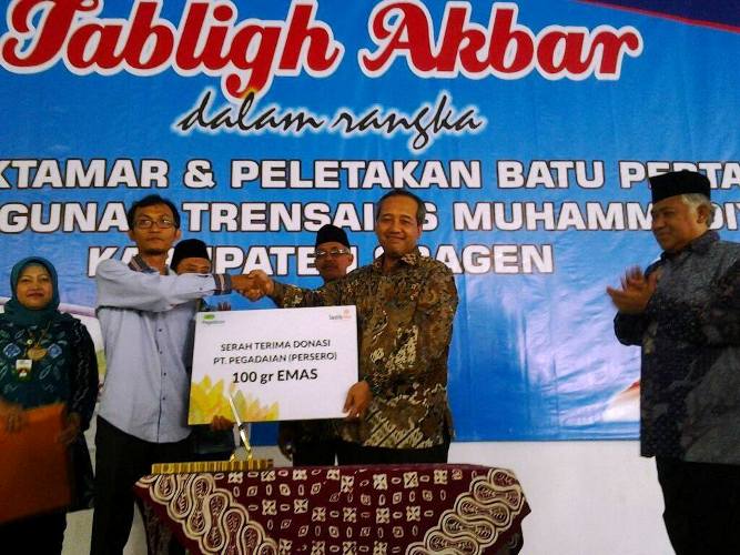 Dalam kesempatan ini, Pegadaian juga memberikan donasi kepada Lazismu dalam bentuk 100 gram logam mulia (emas). Donasi ini diperuntukkan untuk pembangunan SMA Trensains Muhammadiyah Sragen.