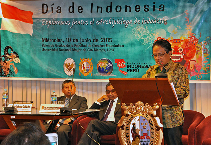 Seminar ini digelar atas kerjasama antara KBRI Lima bekerjasama dengan UNMSM. Duta Besar pun, dalam sambutannya menyampaikan penghargaan kepada UNMSM atas kerjasama dalam penyelenggaraan seminar tersebut, yang diharapkan dapat memberikan informasi mengenai Indonesia dan menjadi ajang tukar pikiran dalam rangka peningkatan hubungan Indonesia-Peru.