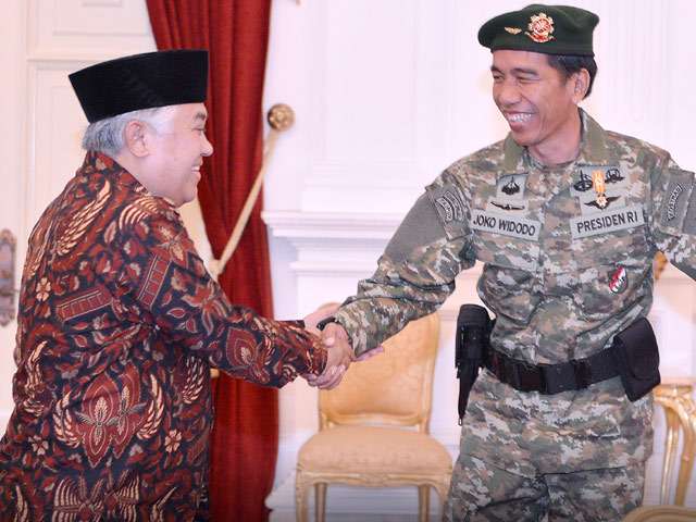 Seperti diwartakan, Presiden Jokowi menerima Ketua Umum PP Muhammadiyah di Istana Negara (Selasa, 16/6), dengan mengenakan seragam militer. Pihak Istana mengatakan, Jokowi tidak sempat ganti baju setelah menghadiri latihan perang TNI AD di Baturaja, Sumatera Selatan. Begitu mendarat di Bandara Halim Perdanakusuma, Jokowi langsung menuju Istana.