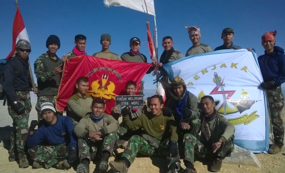 Para pendaki Korps Marinir yang dipimpin Letkol (Mar) Ferry Marpaung berfoto bersama di puncak Gunung Welirang (3156