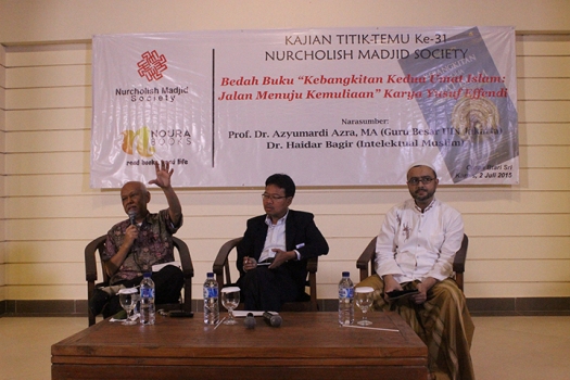 "Saya berpikir ide kebangkitan Islam yang diusung buku ini selaras, bukan ancaman terhadap umat agama lain," ujar Guru Besar UIN Syarif Hidayatullah Jakarta, Azyumardi Azra yang juga hadir sebagai pembahas dalam bedah buku tersebut.