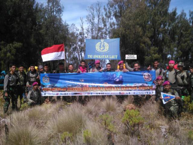 Pendakian salah satu gunung di Jawa Timur itu dilaksanakan selama dua hari, mulai Kamis hingga Jumat kemarin, (10/7) dipimpin Letkol (Mar) Fery Marpaung beserta 19 anggota marinir terdiri dari Taifib dan Denjaka serta 2 orang pendaki dari organisasi pemuda pecinta alam Top Ranger And Mountain Pathfinder, (TRAMP).