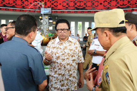 Oesman Sapta dalam peninjauan mengatakan terminal itu bagus. Dirinya mengharap terminal itu dikelola oleh pemerintah pusat. Alasannya kalau diurus oleh pemerintah daerah dirasa terlalu berat. Hal demikian bisa jadi karena itu merupakan terminal internasional.
