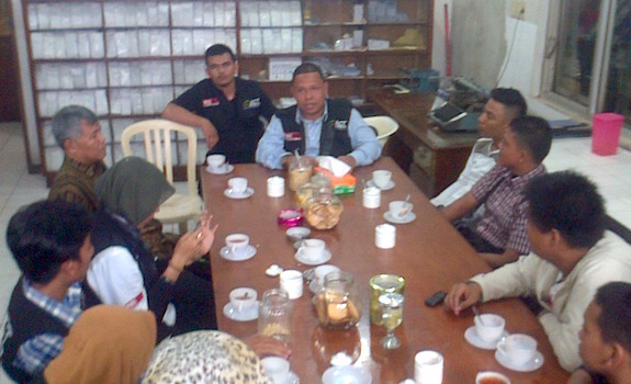 Ketua Masyarakat Relawan Indonesia (MRI) Sumatera Utara dan Aksi Cepat Tanggap (ACT) Cabang Medan, Zulham Effendi (tengah) berdialog dengan pengelola pabrik pengolahan teh Bah Butong, PTPN IV, Kabupaten Simalungun, Minggu siang (2/8). Rombongan MRI dan ACT diterima Kepala Dinas Pengolahan Unit Babutong, PTPN IV, M Asri Rambe. Mereka juga diajak melihat langsung proses pengolahan daun teh segar menjadi teh konsumsi. MedanBagus.Com