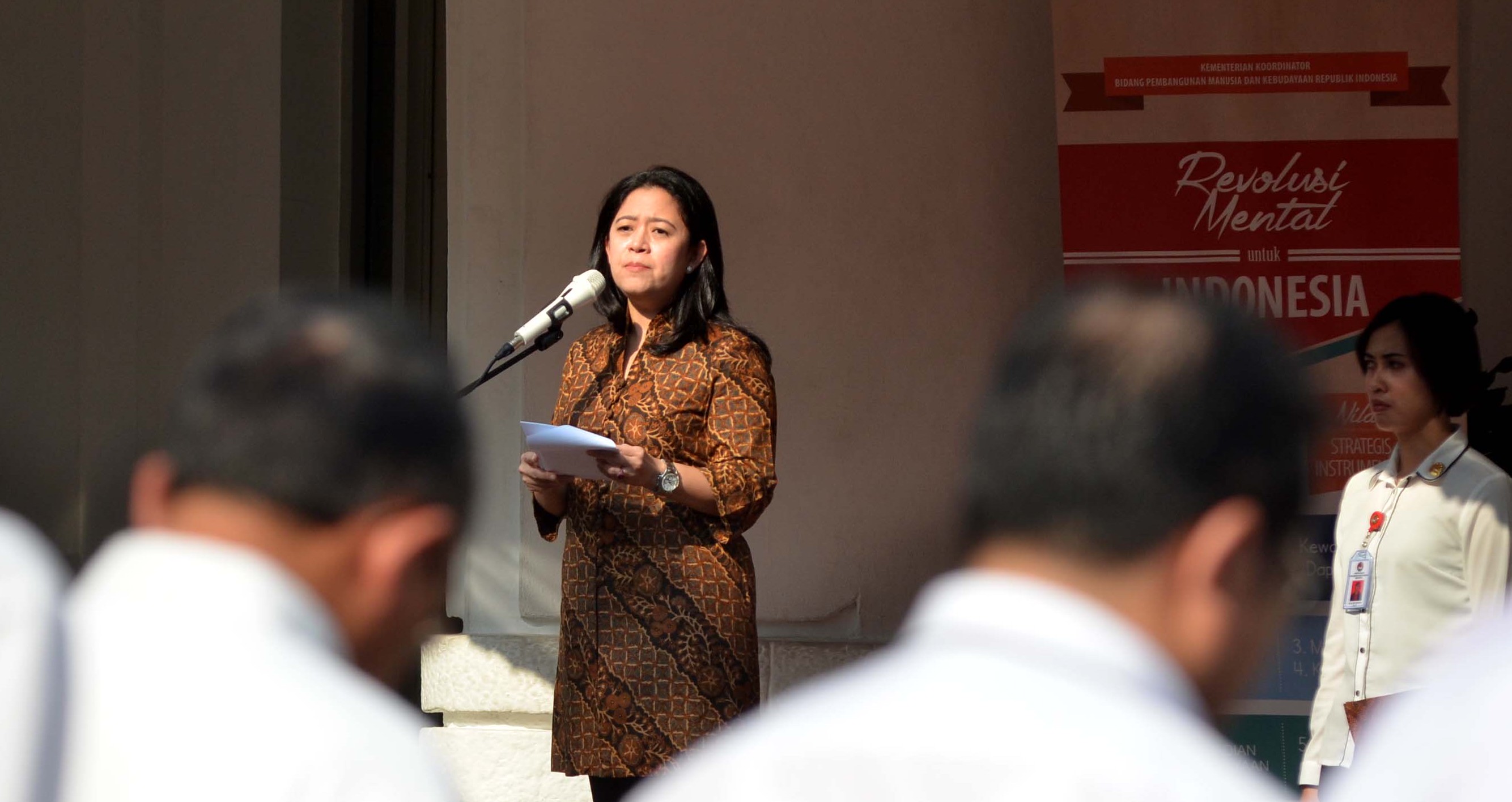 Seluruh pimpinan dan pegawai Kementerian Koordinator PMK hadir dalam upacara gerakan Revolusi Mental. Dalam acara itu juga, Puan menjelaskan alasan mengapa gerakan Revolusi Mental harus diawali di Kementerian PMK. Sebab Kementerian PMK ditunjuk Presiden Joko Widodo sebagai koordinator gerakan Revolusi Mental.