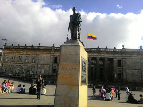 Sejumlah orang berkumpul di sekitar patung Simon Bolivar di Plaza Bolivar, La Candelaria Bogota Kolombia pada Sabtu sore waktu setempat (29/8). Simon Bolivar merupakan pemimpin politik yang berjasa dalam kemerdekaan Venezuela, Ekuador, Bolivia, Peru dan Kolombia dari penjajahan Spanyol. Amelia Fitriani/RMOL