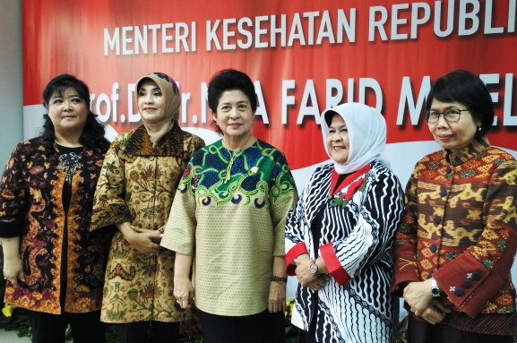 Menteri Kesehatan Nila Moeloek berfoto bareng saat meresmikan pabrik benang bedah nasional PT Triton Manufactures di kawasan industri Sentul, Jl Cahaya Raya Kav H4A, Leuwinutug, Citeureup, Bogor, Sabtu (19/9). RMOL
