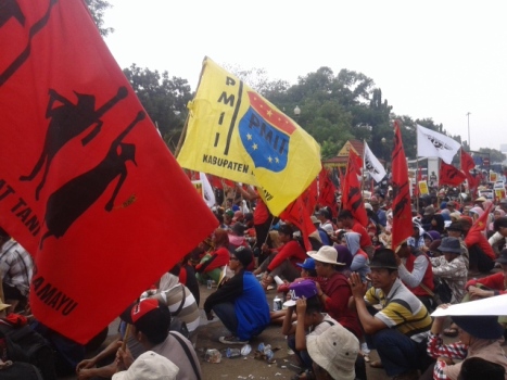 Dalam orasinya, mereka menuntut pemerintahan Jokowi-JK tidak mengulangi kesalahan pemerintahan sebelumnya yang tidak punya kemauan politik untuk menjalankan pembaharuan agraria sejati.