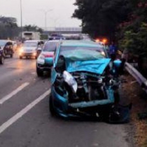 Berdasarkan foto di Twitter TMC Polda Metro Jaya, mobil Karimun mengalami rusak berat pada bagian depan, lantaran membentur bahu jalan sebelah kiri.