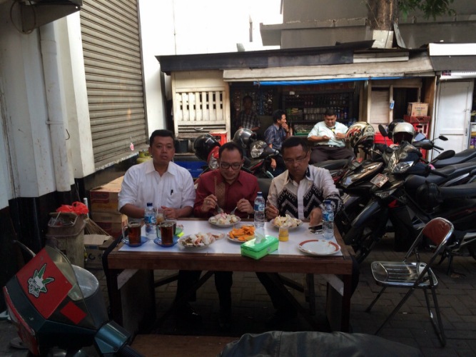 Rapat terbatas yang mereka tunggu adalah rapat membahas Kredit Usaha Rakyat yang dipimpin oleh Presiden RI di Kantor Presiden. Telanjur masuk kompleks Istana, trio itu lantas berjalan kaki menyeberangi Jalan H Ir Juanda untuk makan di warteg kaki lima.