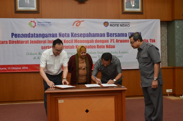 Kesepakatan tersebut dituangkan dalam MoU yang ditandangani oleh Dirjen IKM Kemenperin Euis Saedah, Direktur Operasional PT. Arwana Citramulia Tbk. Edy Suyanto, dan Kadisperindag Kabupaten Rote Ndao Nunuhitu yang mewakili Bupati Rote Ndao dengan disaksikan Sekjen Kemenperin Syarif Hidayat mewakili Menteri Perindustrian di Kemenperin, Jakarta, Kamis (15/10).