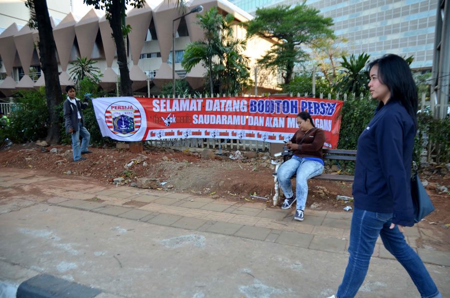 "Selamat datang bobotoh Persib. The Jakmania saudaramu dan akan menjagamu." Begitulah tulisan di spanduk yang terbentang di Jalan Gatot Subroto Jakarta, Sabtu (17/10/2015). Sepanduk tersebut terpasang di jalur dimana akan di lintasi superter bobotoh Persib Bandung yang akan menyksikan final piala Presiden pada esok minggu (18/10) antara Persib vs Sriwijaya. Putu Wahyu Rama/RMOL