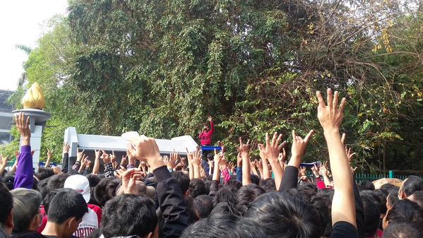 Para suporter sepak bola mulai memadati Stadion Gelora Bung Karno (GBK) Jakarta, Minggu pagi (18/10). Stadion GBK akan menjadi saksi pertandingan Persib Bandung vs Sriwijaya FC dalam laga final Piala Presiden 2015. Dilaporkan akun @TMCPoldaMetro, pengamanan di Stadion GBK dilakukan oleh personil TNI-Polri. Repro