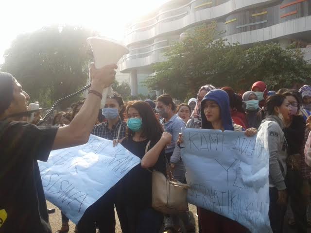 "Kita menuntut rektorat bicara pada kami," tegas salah seorang mahasiswa, Paul dalam orasinya di depan Kampus yang terletak di kawasan, Salemba, Jakarta Pusat itu.