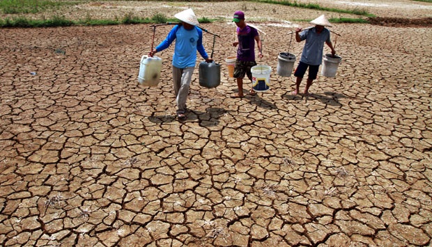 . Kemarau panjang yang masih berlangsung membuat warga Bojonegoro, Jawa Timur, kesulitan medapatkan air.