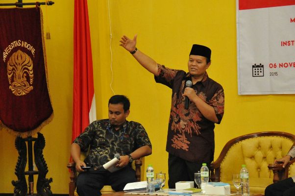 Wakil Ketua MPR Dr. Hidayat Nur Wahid bersama Ketua Program Sejarah Fakultas Ilmu Budaya (FiIB) UI Drs. Yon Mahmudi menjadi narasumber dalam sosialisasi yang berlangsung di Balai Sidang Djokosoetono Fakultas Hukum UI Depolk, Jawa Barat, Jumat (6/11).